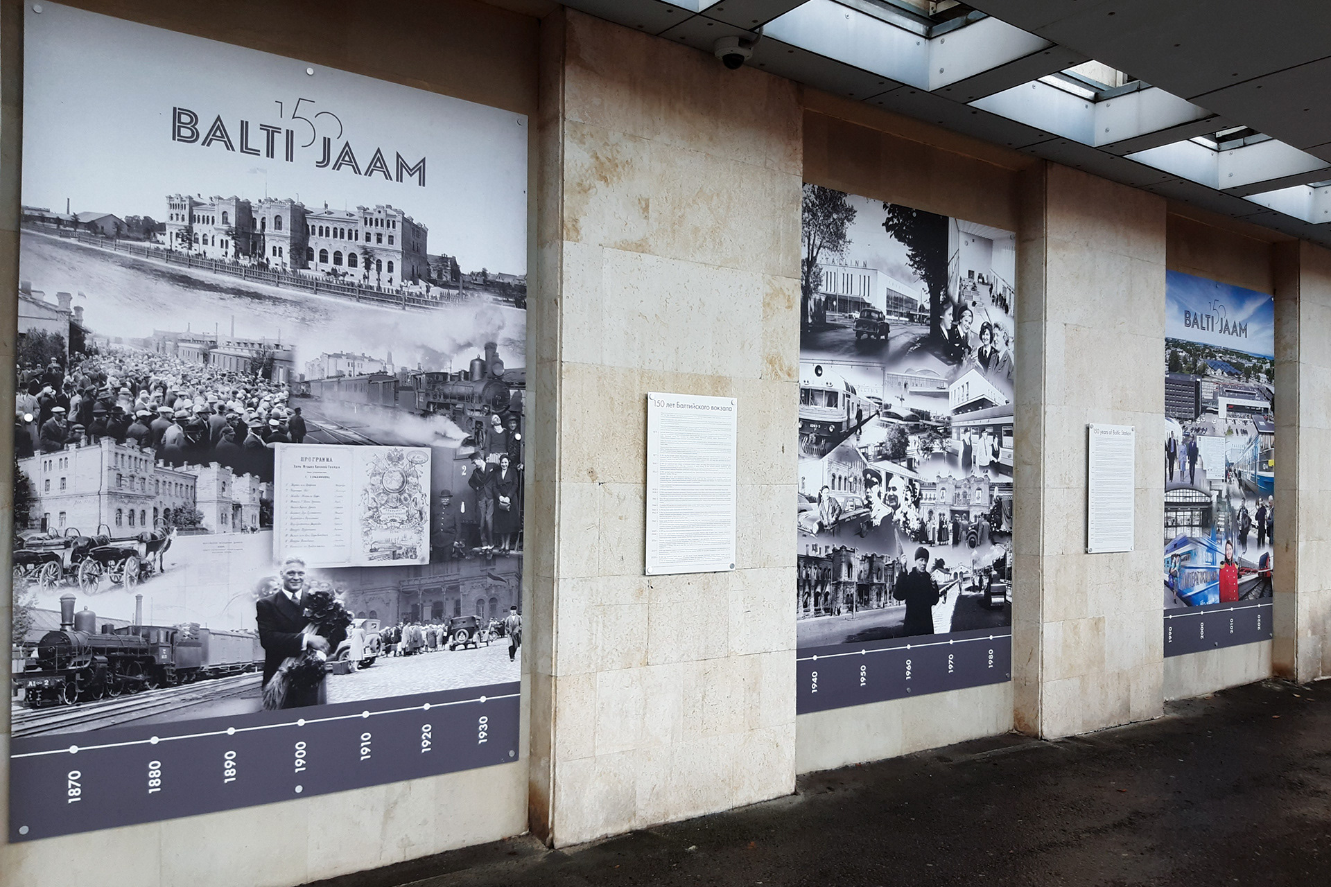 Anniversary logo and historical panel design for Balti Jaam railway station.